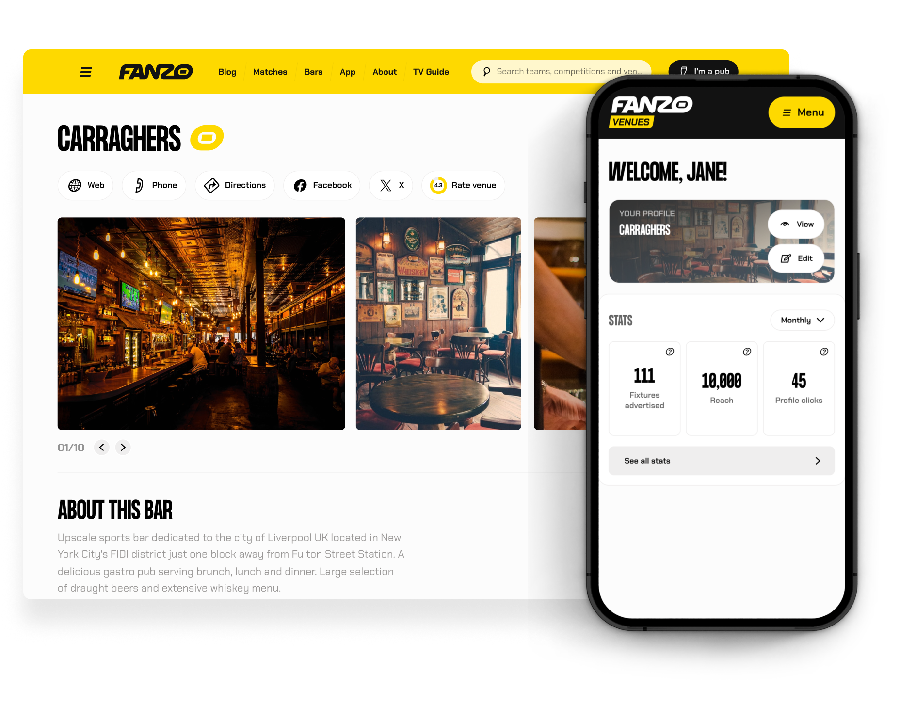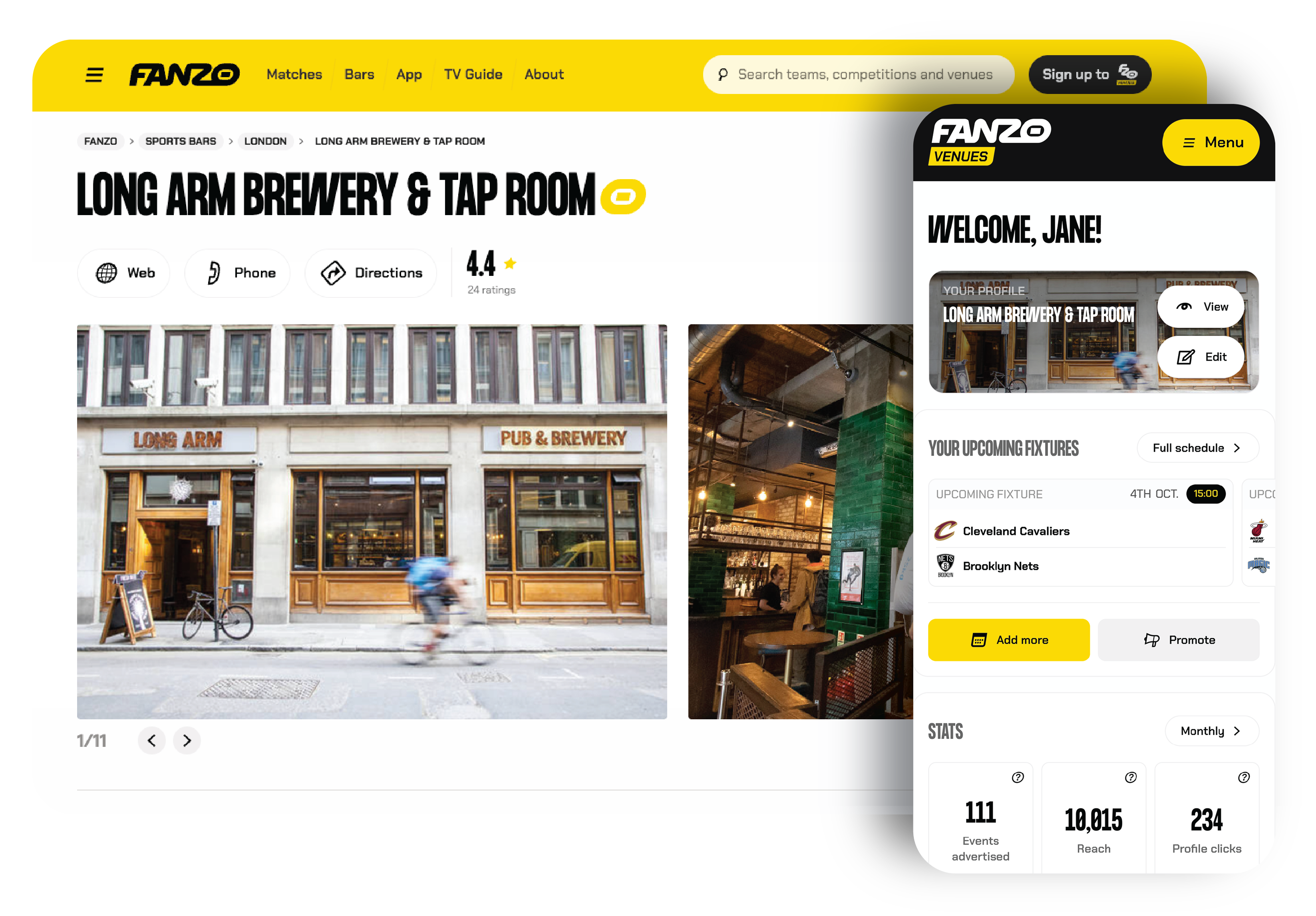 Sign up to get your FANZO profile and reach 3m customers searching for pubs locally.